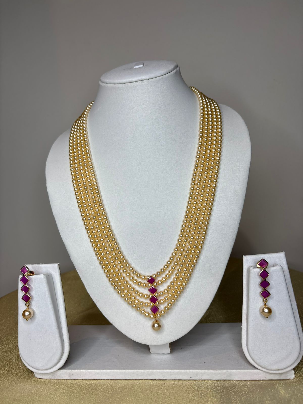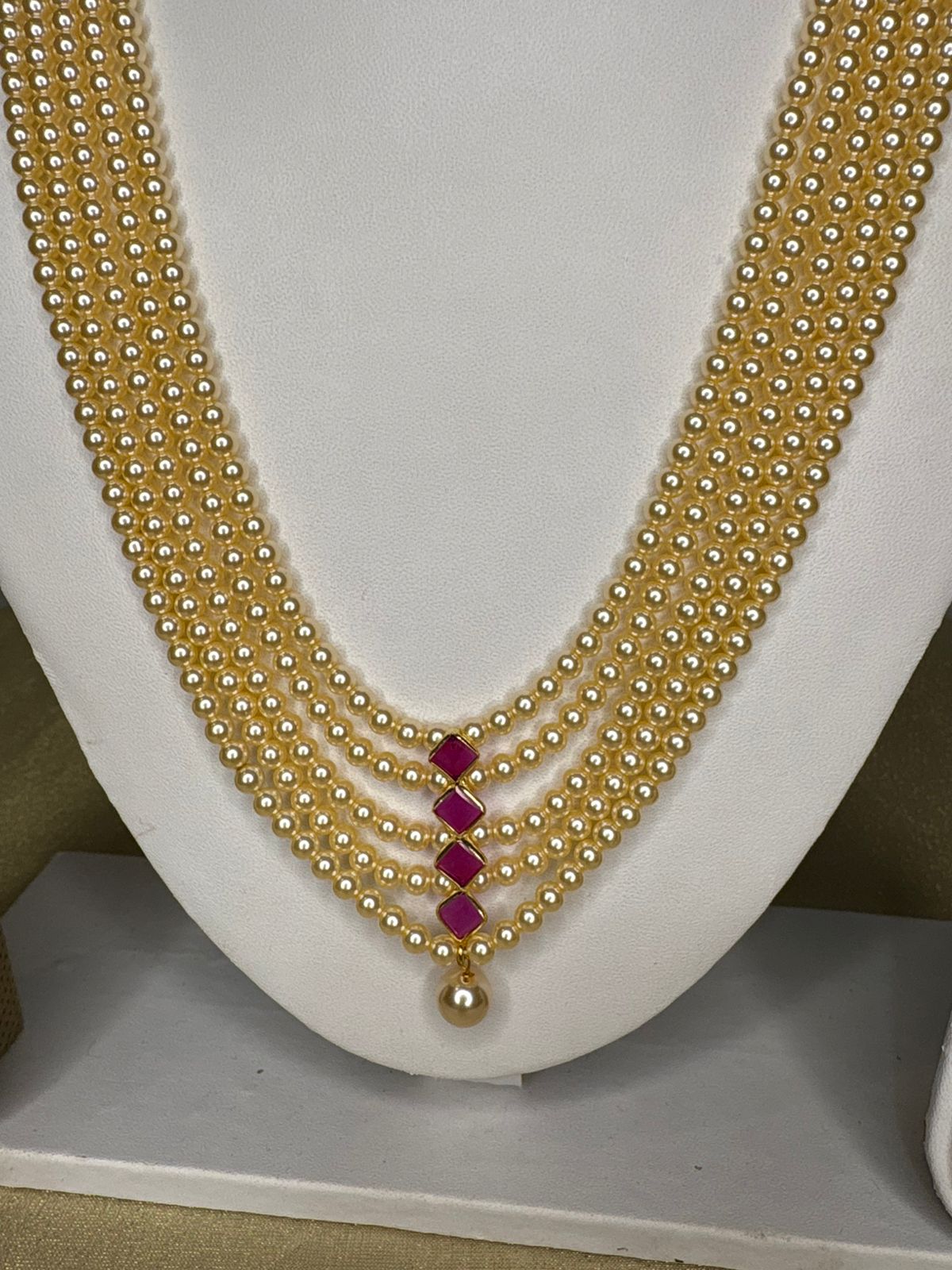 Real Swarovski Pearls Haram with Ruby Pendant set