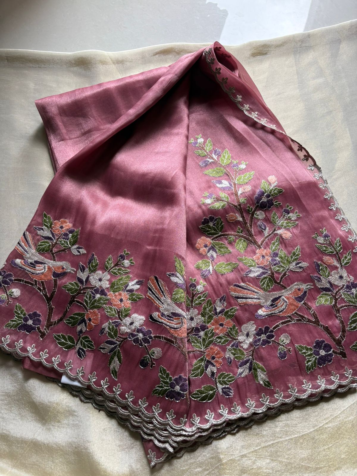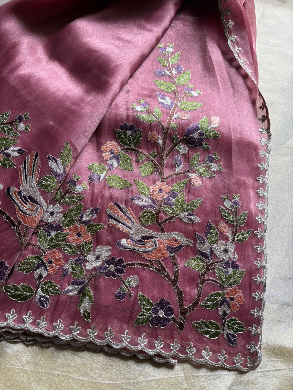 1 Gram Tissue saree with all over thread work and rich pallu and paired with running blouse with thread work.