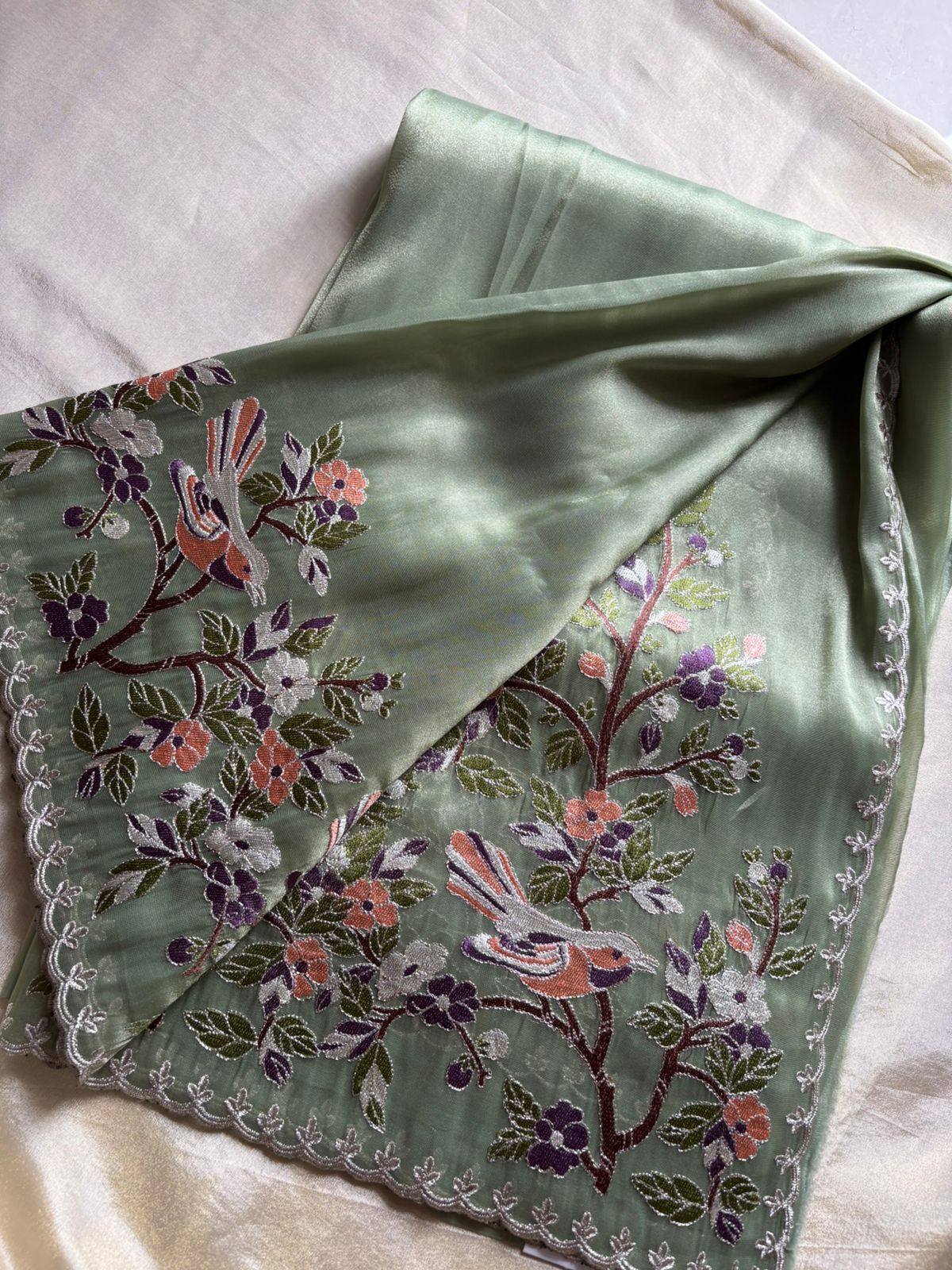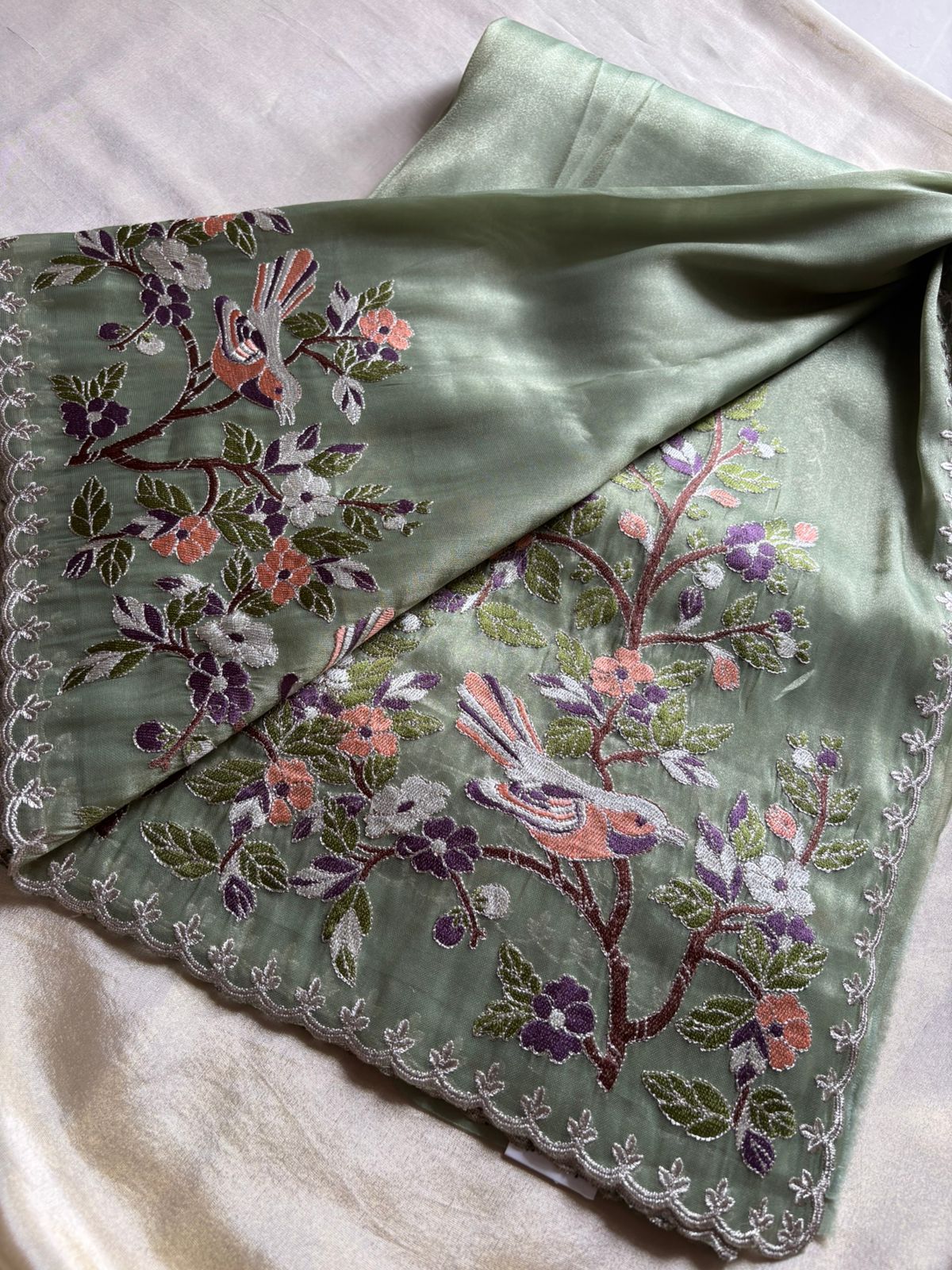 1 Gram Tissue saree with all over thread work and rich pallu and paired with running blouse with thread work.