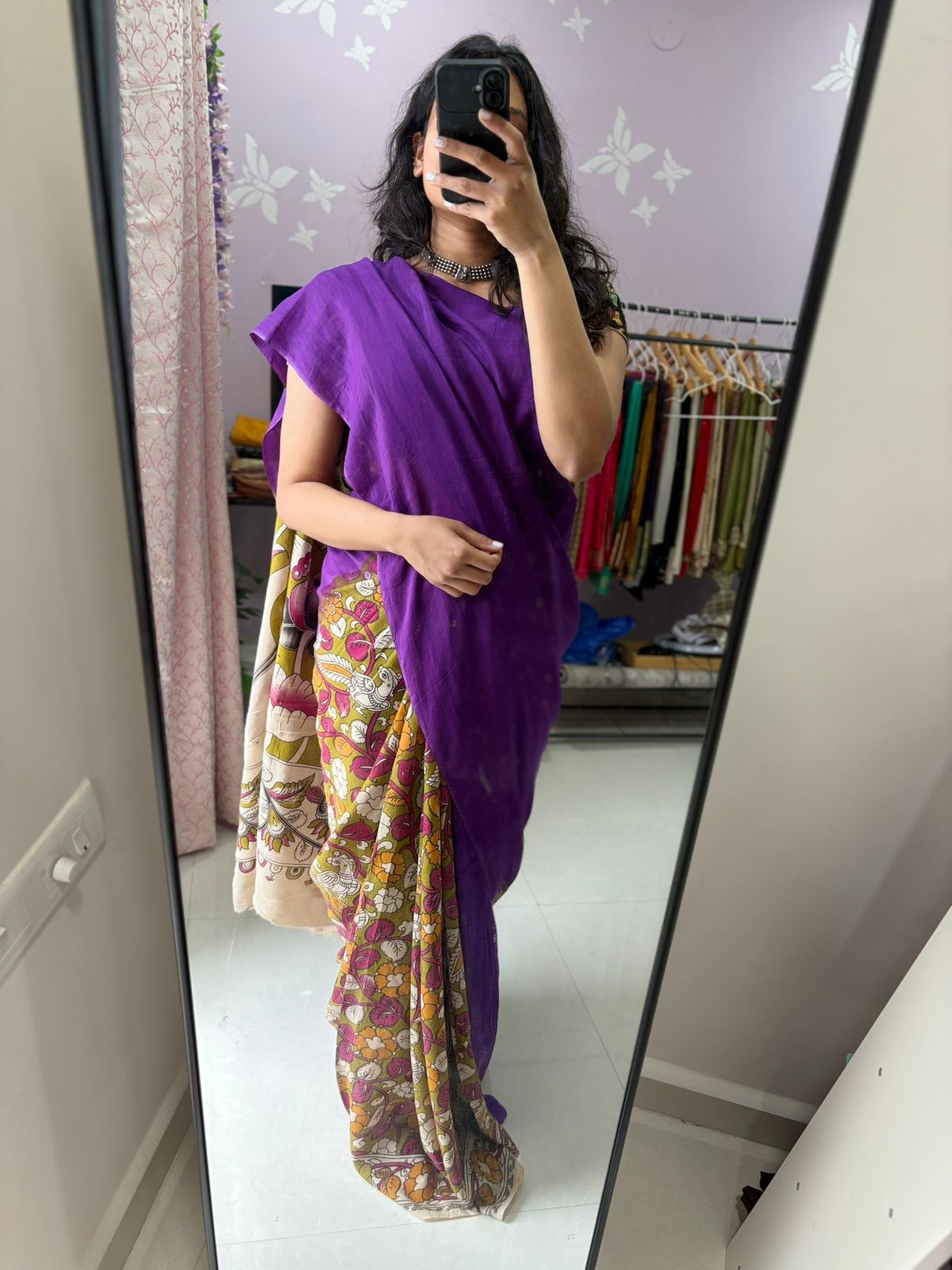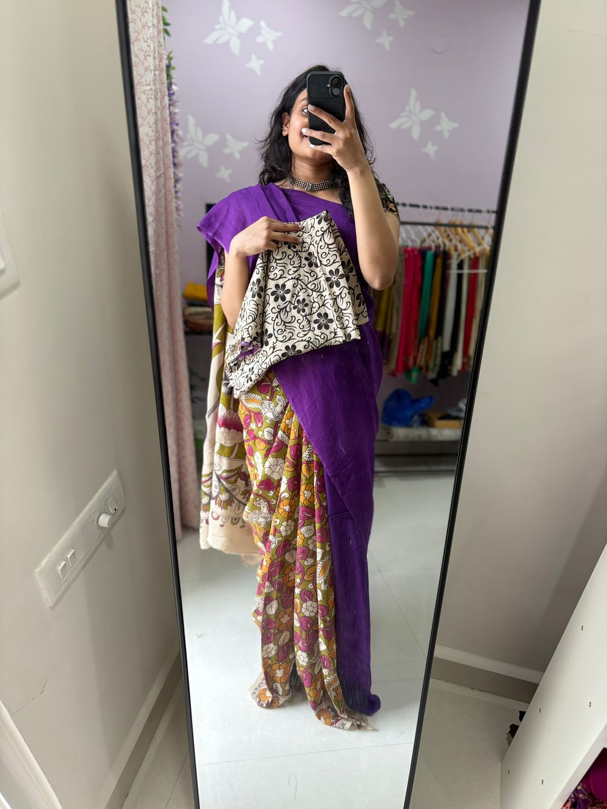 Modern & Chic: Kalamkari Fusion Half-and-Half Saree